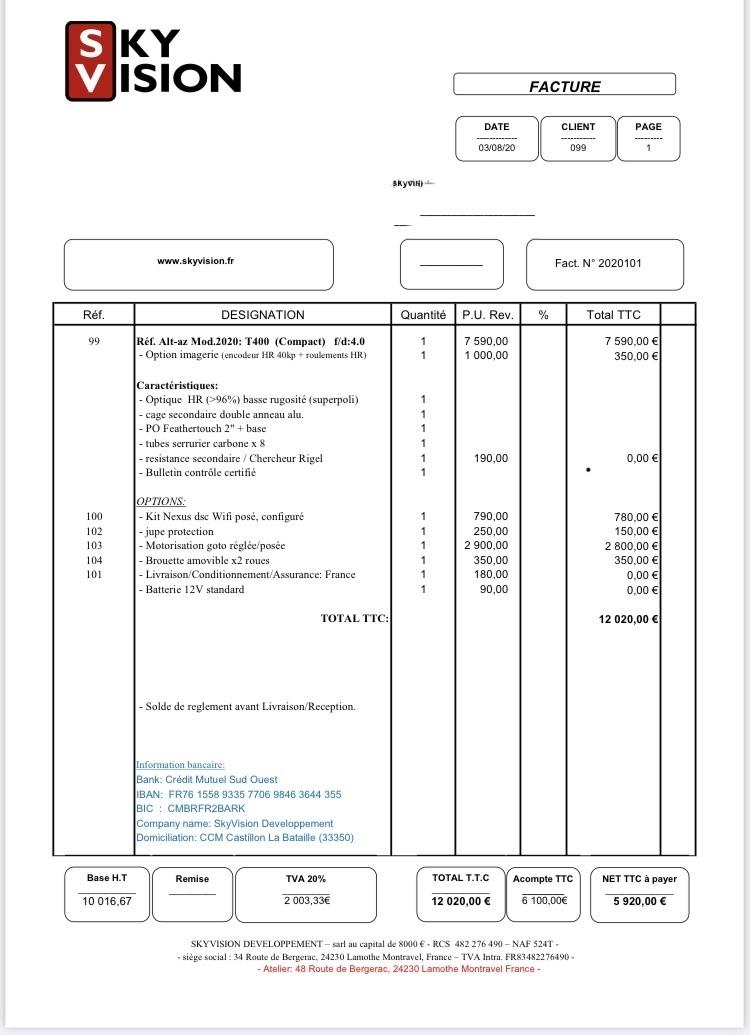 A vendre T400 Skyvision goto option imagerie avec encodeurs HR 40000 pas et roulements HR.