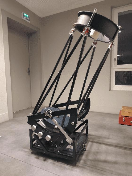 C'est un crève-coeur de le vendre, c'était mon premier dobson artisan après des années sur du SkyWatcher et du Explore Scientific. Le miroir est incroyable. Les vues de Jupiter ou Saturne notamment, à grossissement x600 et avec une table équatoriale pour ne pas se soucier du suivi, sont bouleversantes. Franck Grière est un magicien! La structure est également d'excellente qualité (collimation très stable, mouvements agréables) et le dobson démonté est très facilement transportable dans une petite citadine. Les composants individuels ne sont pas trop lourds. Mais bon, ça n'a pas de sens de garder ce genre d'engin dans son appartement pour le sortir une fois par an, autant qu'il profite à quelqu'un qui aura l'occasion de l'utiliser plus souvent... Au passage, je cherche à le remplacer par un dobson plus modeste, industriel, diamètre 250 ou 300. Si jamais vous avez ça qui traîne, on peut éventuellement l'inclure dans la transaction.