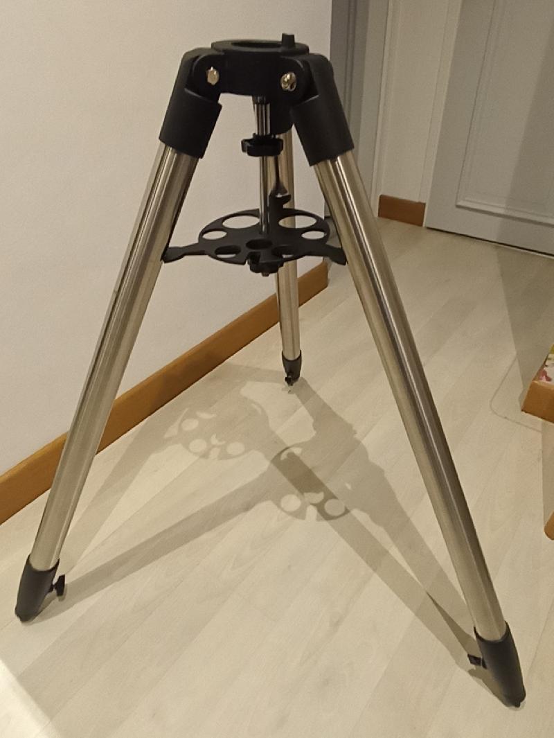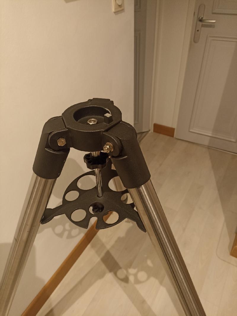 Je vends un trépied acier inoxydable pour eq3 eq5 ...(évidement central 60,8mm profondeur 19,7) diamètre tube 4,2cm, hauteur mini 0,85m maxi 1,18m, poids 6,4kg avec barre et porte-oculaire, le tout en parfait état. 60€ fdpi