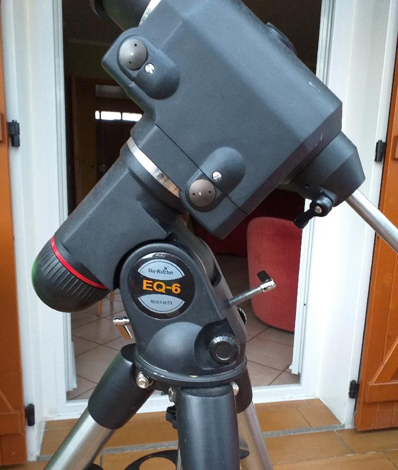 en cadeau , monture EQ 6 non fonctionnelle ( défaut électronique??) avec viseur polaire, sans raquette de commande ni contre-poids, à réparer...