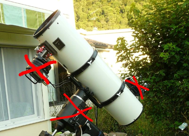 - La distance foyer/secondaire est d'environ 24cm soit une distance foyer/tube de 12cm environ. Cela laisse pas mal de place pour mettre quasiment n'importe quel PO et camera actuels.