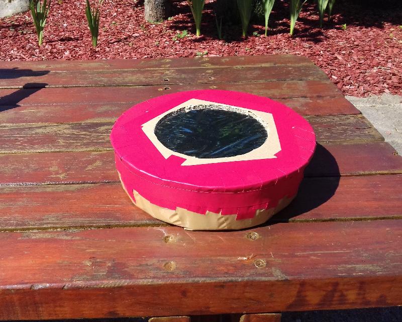 Et en bonus son filtre solaire (feuille de mylar, fabrication maison) dans sa boîte de protection.