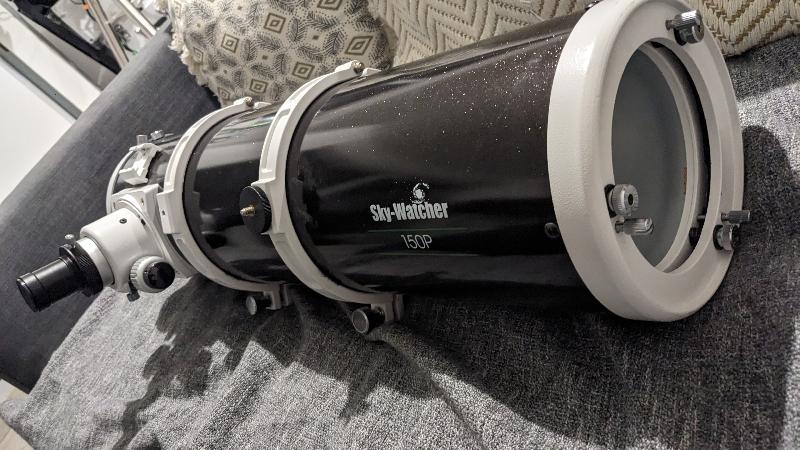 suite au passage à une lunette SW80/600 il y a déjà un petit moment, je me sépare de mon tube SW 150/750 PDS. La vente comprends le tube en lui-même ainsi que les anneaux et la platine. Elle ne comprends ni oculaire, ni lunette chercheuse.
