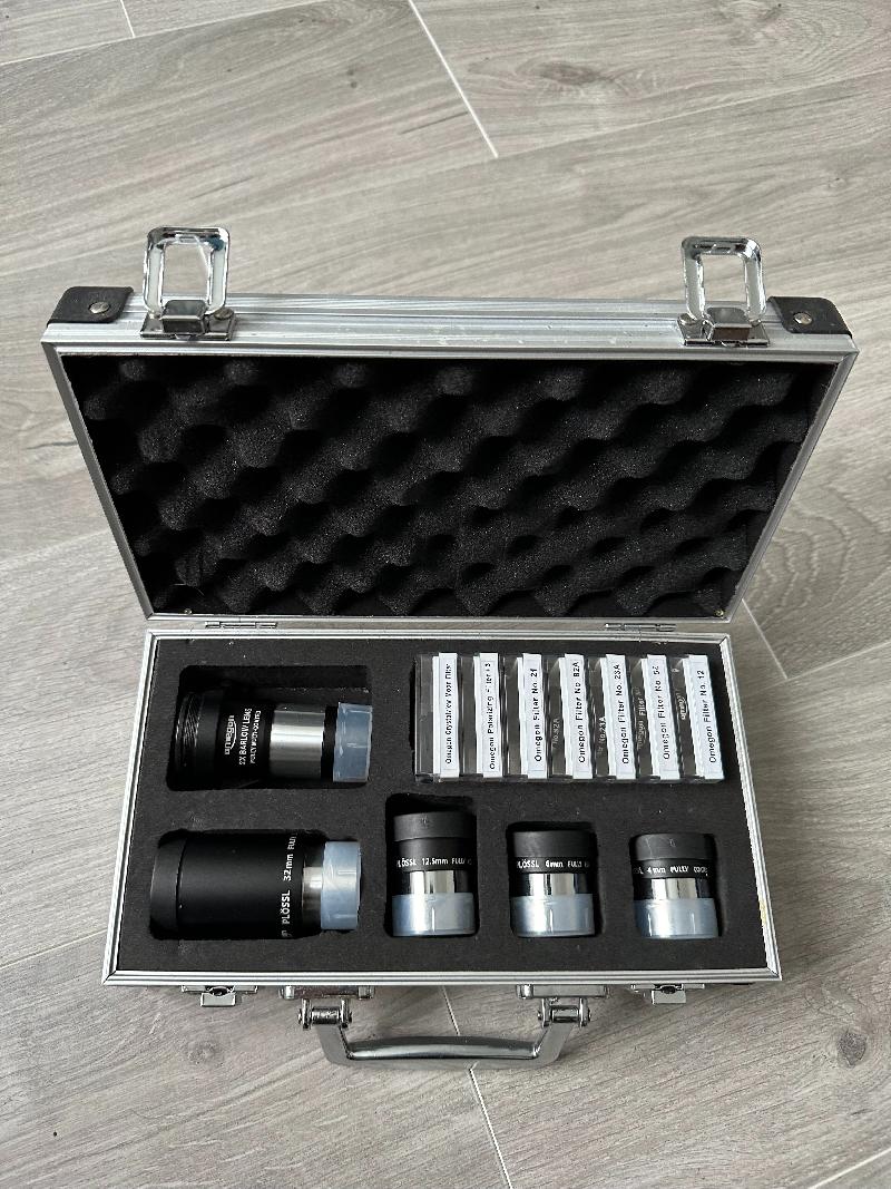 OMEGON valise comprenant: 7 Filtres, 4 Oculaires plossl, 1 Lentille Barlow2X.
