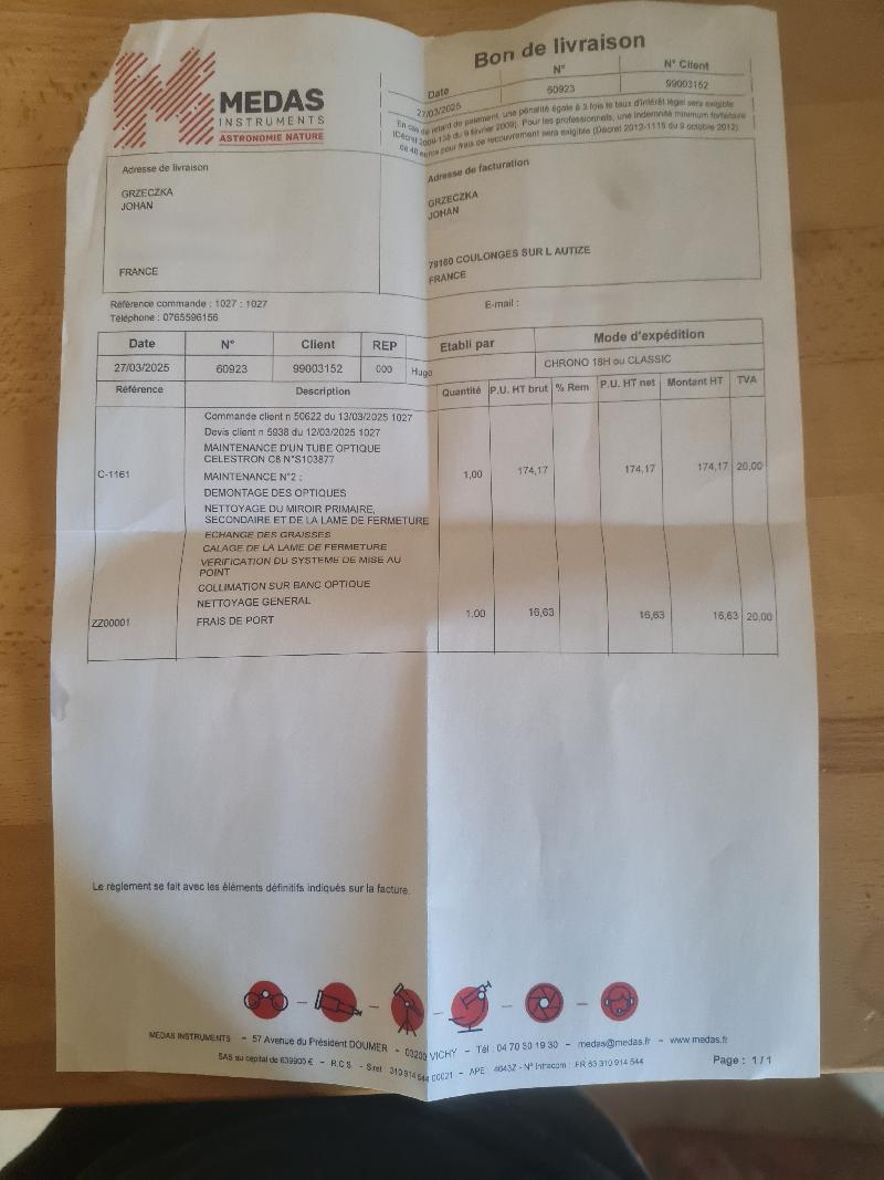 Bonjour a tous , je vend mon Télescope Celstron complet acheter en 2017/18 avec divers accessoires car je ne m en sert absolument plus ( j était trop pris pas le travail et les déplacements ) et que j ai décider de me lancer dans l astrophoto donc achat d'un news setup , il a été révisé entièrement en Mars 2025 chez Medas instrument .