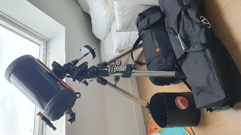 Une sacoche de transport celestron pour le tube, une autre pour le trépied et ses contrepoids.