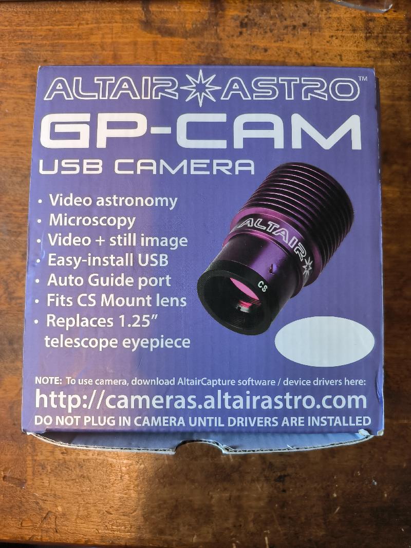 Suite à l'arrêt de l'astrophoto je vends cette caméra Altaïr Astro GPCAM 3 224c en parfaite état avec un filtre vert, un rouge plus un IR cut.