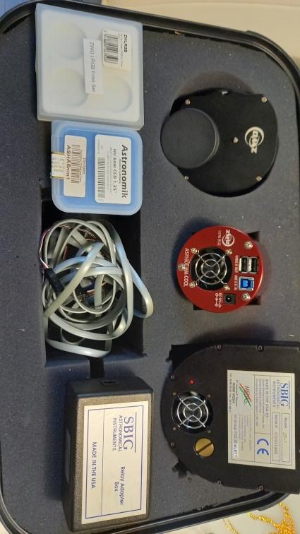 Cause arrêt de l'astro, je vends ma caméra ZWO 1600 NB avec sa roue à filtre manuelle équipée des filtres couleur et d'un filtre Halpha