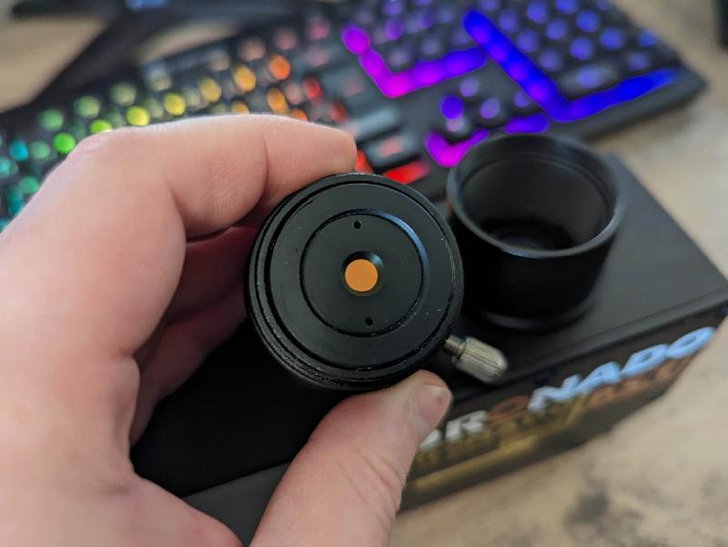 Je me sépare de mon Coronado, car j'ai récemment acquis un setup solaire bien plus conséquent. Je n'ai donc plu l'utilité de cette lunette. Je l'ai acheté fin 2019, elle m'a rendu pas mal de fières services. Le revêtement sur l'objectif montre quelques signes d'usure, mais l'optique reste parfaitement viable.
