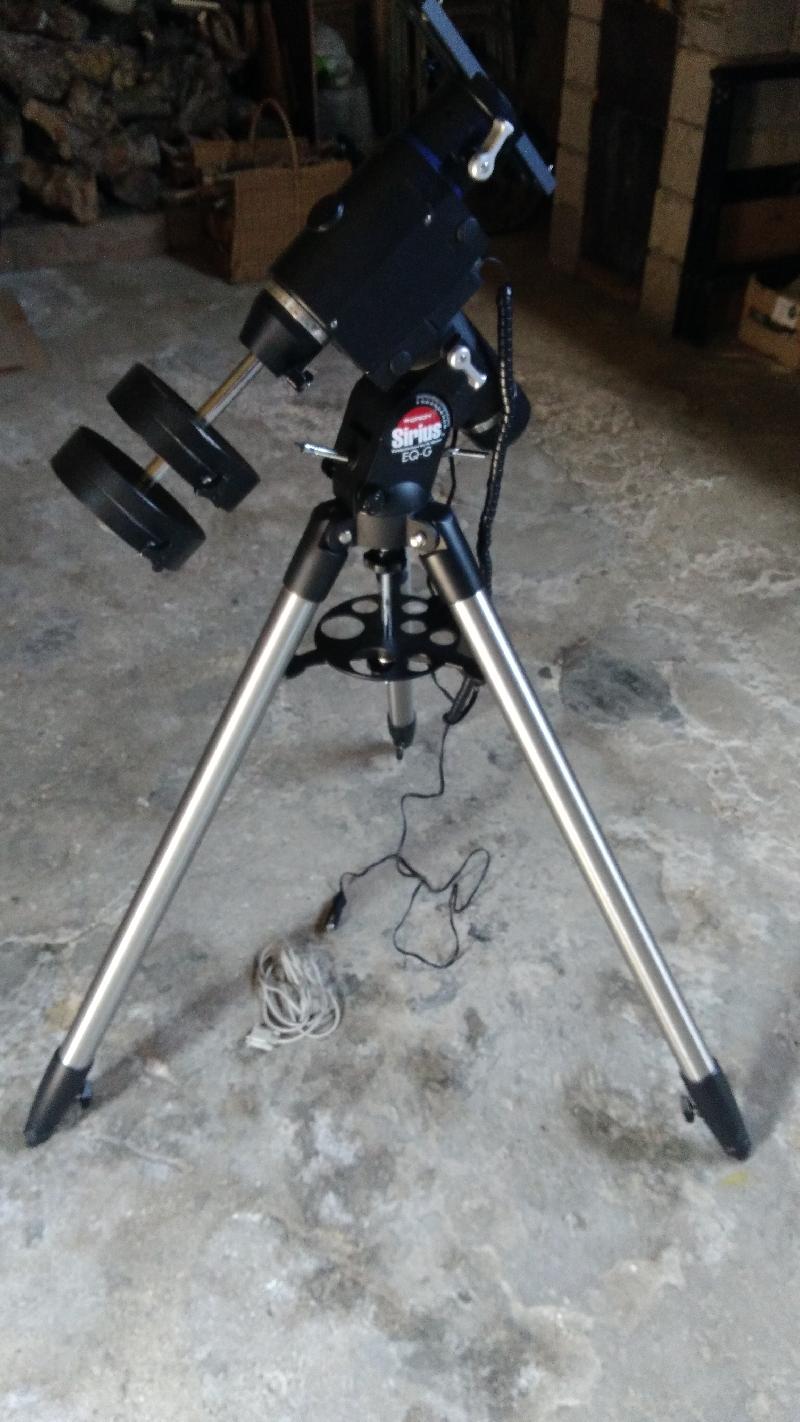 Je vends ma monture équatoriale Orion Sirius Go-To en bon état (uniquement quelques marques au niveau de l'emplacement de la queue d’aronde, invisibles lorsqu'un tube est mis en place, et quelques légères marques sur les deux contrepoids).