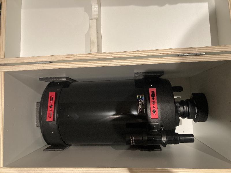 J'ai les boites et cartons d'origine du trépied, du C8 et de la monture (voir photo) mais toutes les autres boites et cartons sont manquants.