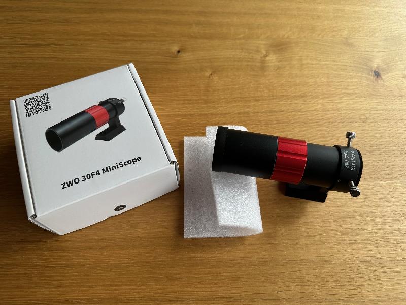 Mini chercheur guide ZWO 30mm f/4 + caméra monochrome ZWO ASI220MM Mini + mini queue d'aronde.