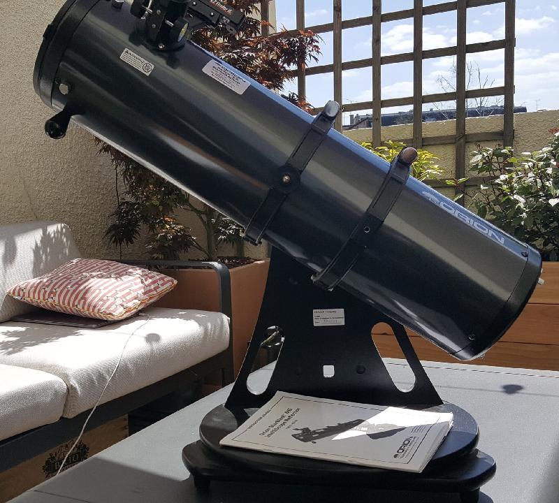 Vendu avec 4 occulaires : 25mm (Orion Sirius plossl), 10mm (Orion Sirius Plossl), 8mm (Omegon Cronus), 4mm (Omegon Cronus)