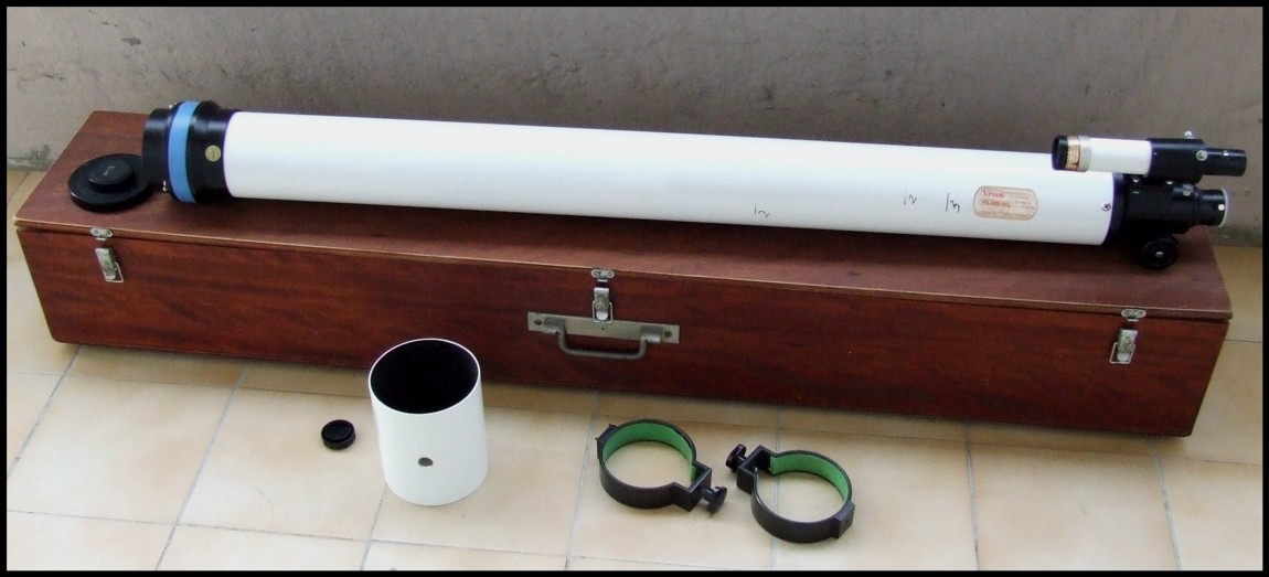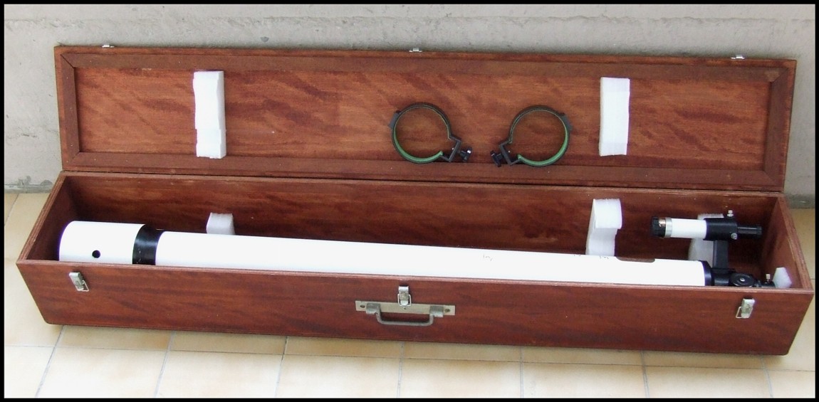 Objectif doublet achromatique 80mm ouvert à 15 d’excellente qualité.