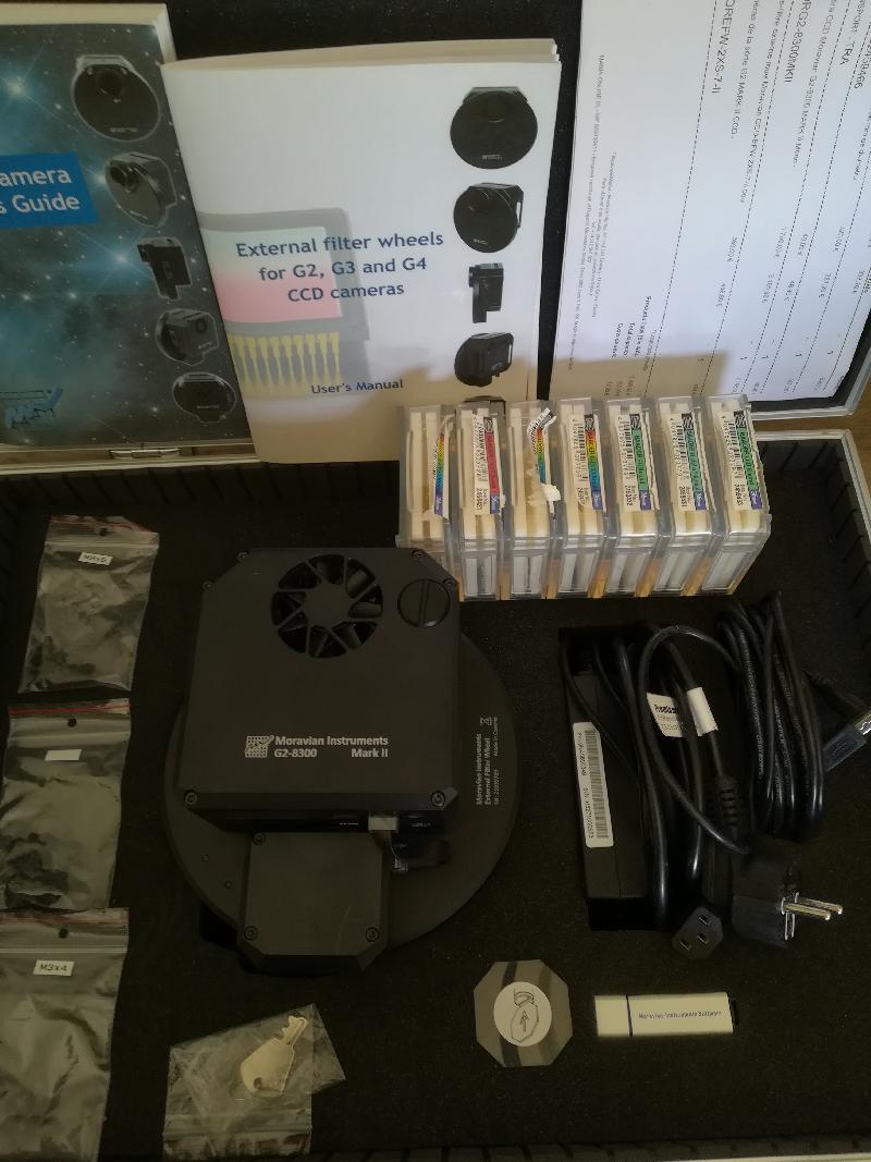 Suite à arrêt astro, je vend ma caméra Moravian G2-8300 MK mono achetée en juillet 2019 et qui n'a servie qu'une vingtaine de fois en poste fixe. Elle est équipée d'une RAF Moravian EFW-2XS MK2 pour 7 filtres en 36 mm non montés ainsi qu'un set de filtres Badder planétarium LRVB SHO 36 mm . Elle a profité des dernières améliorations de Moravian pour ce capteur, bruit réduit , lecture plus rapide , - 40 sous la température ambiante , nez réglable pour le tilt etc.