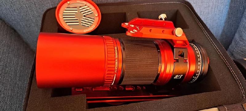 Le kit inclu l'optique, le pare-soleil, le bouchon (qui fait également masque de Bahtinov), bague adapteur filtre 2'' et la housse d'origine.
