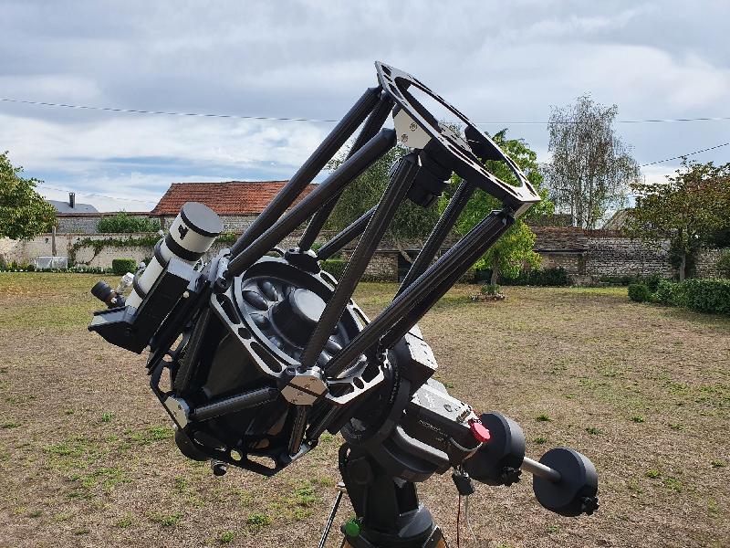 Il n'a servi que 7 fois l'été dernier en visuel et est resté sur sa monture, il est donc immaculé. La collimation parfaite à l'arrivée est restée en l'état.