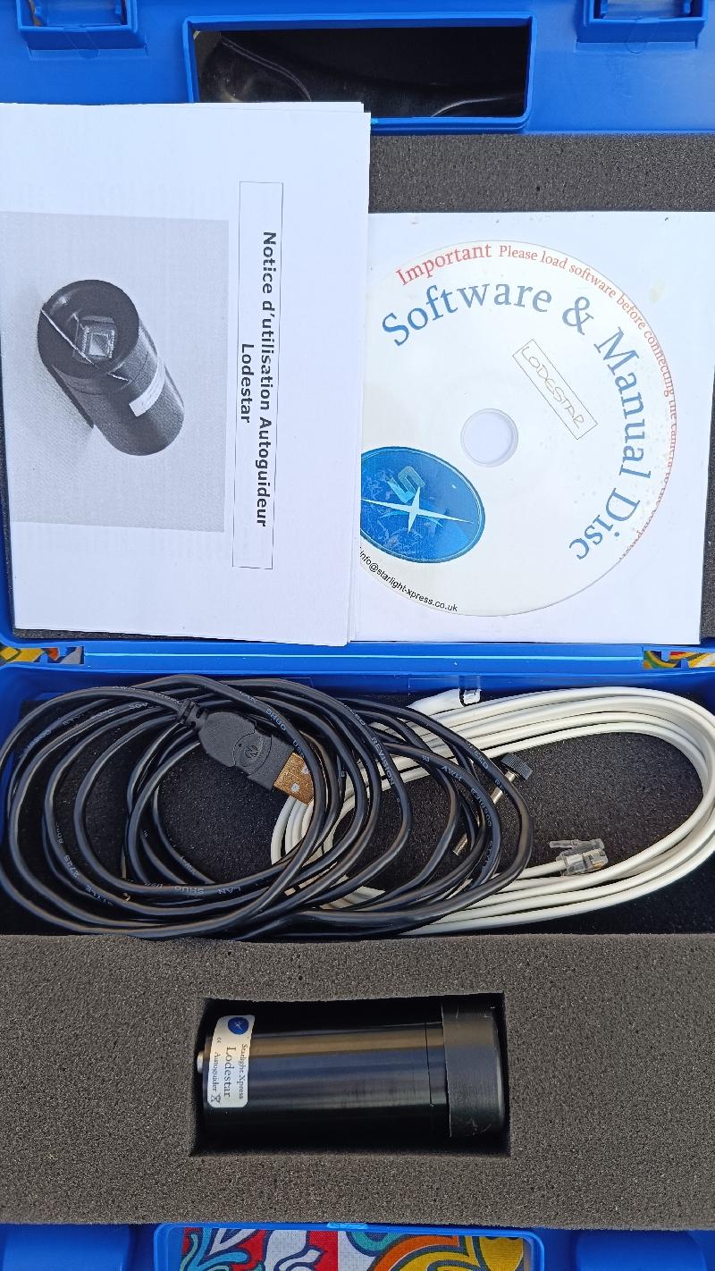 Caméra Autoguideur Lodestar : modèle ICX429AL, format 751X580 pixels avec tous ces accessoires dans sa mallette. 100€