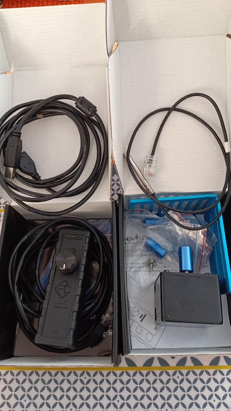 Focus cube de Pegasus Astro : Focus cube version avant la V2, complet avec lot de coupleurs, sonde de température et raquette manuelle. 100€