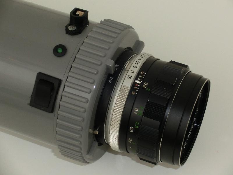 La base est un tube intensificateur de lumière en cascade P8079HP, dans un caisson en PVC avec d'un côté une monture Minolta MD pour utiliser n'importe quel objectif compatible, et de l'autre un filetage diamètre 55mm qui permet d'utiliser n'importe quel objectif avec un filtre de diamètre 55mm comme "oculaire".