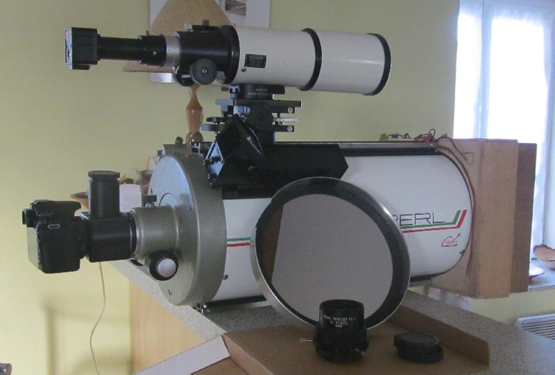 accessoires : filtre solaire pleine ouverture , viseur Telrad , réduc.de focale Vixen F/D 6 , flip mirror , platine micro . guidage , lunette guide