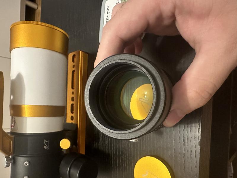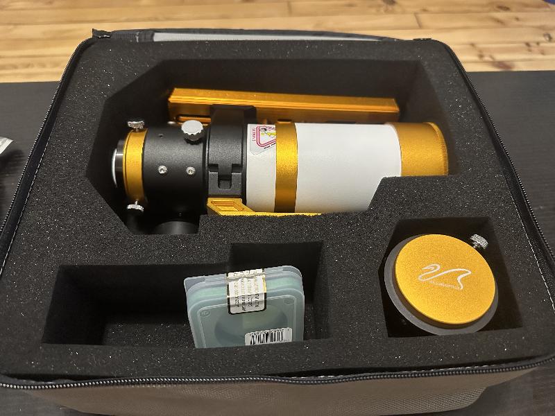Il y'a une entaille dans la housse de transport (voir photo), que j'ai du faire pour pouvoir transporter la lunette en laissant l'etrier du focuser monté dessus