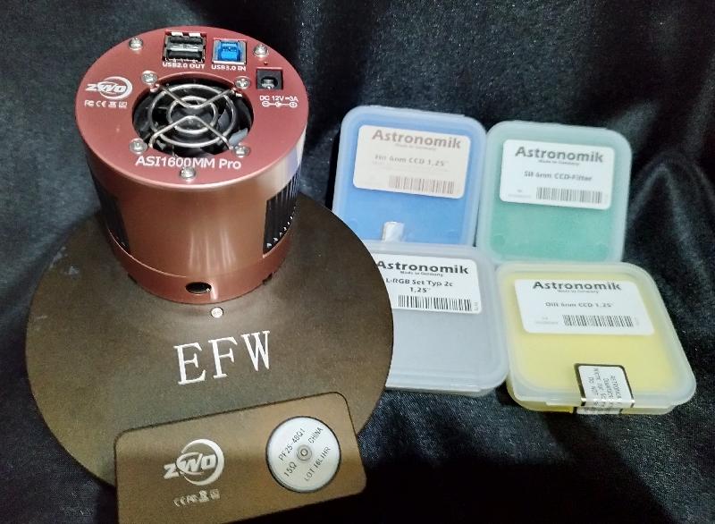 Cause besoin urgent de finances je Vends une caméra zwo 1600mm avec roue a filtre zwo 8 positions équipée de filtres astronomik sho et l-rvb . négociable