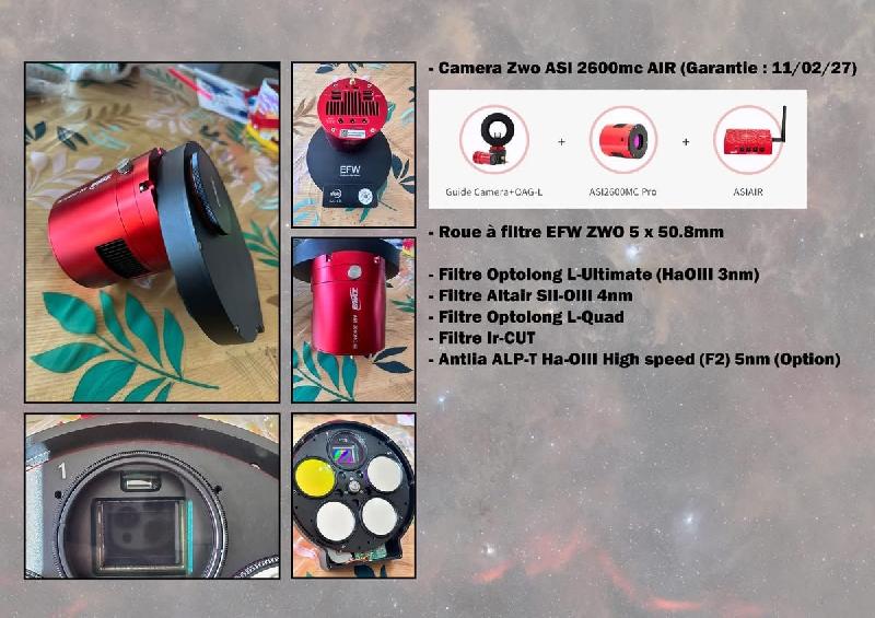 Caméra Zwo asi 2600 Mc air (caméra de guidage/diviseur optique et asiair intégré)