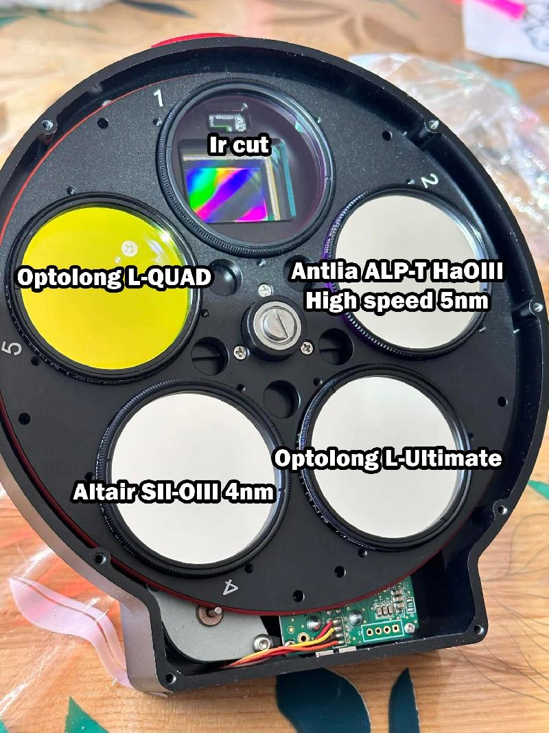 En option si vous avez un F2 un filtre Antlia ALP-T HA OIII en High speed à 5nm qui me sert quand je shoot avec mon 135mm à F2