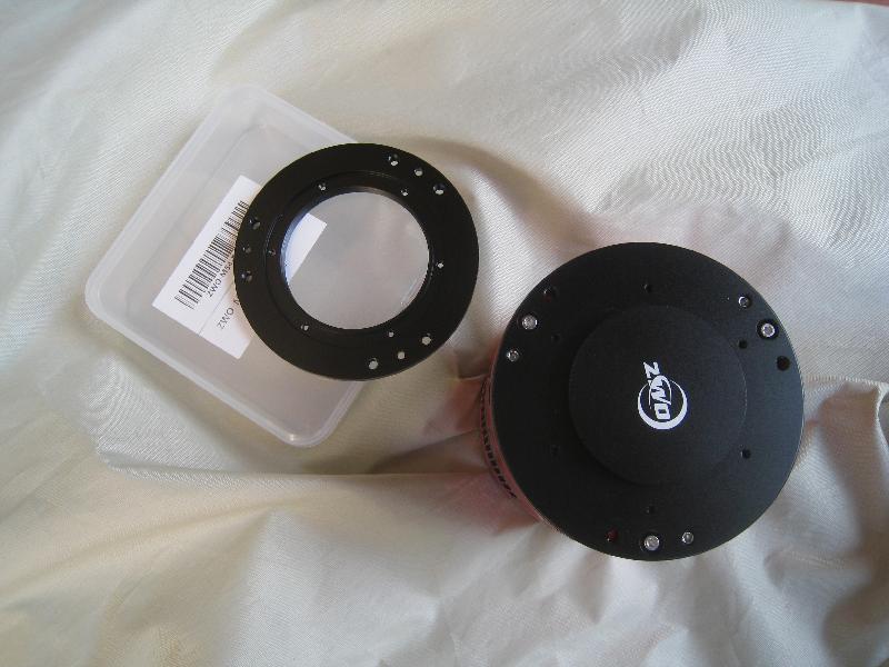 Livrée avec une bague supplémentaire neuve ZWO M54 Sensor Tilt Plate ( vendu neuf 45€ hors frais de port ) pour installer des accessoires en M54 au lieu de M42 (M68 OAG ou 2”EFW par exemple) .