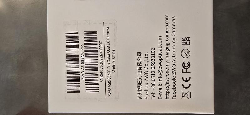 Vends caméra ZWO ASI533 MC Pro couleur état : neuve