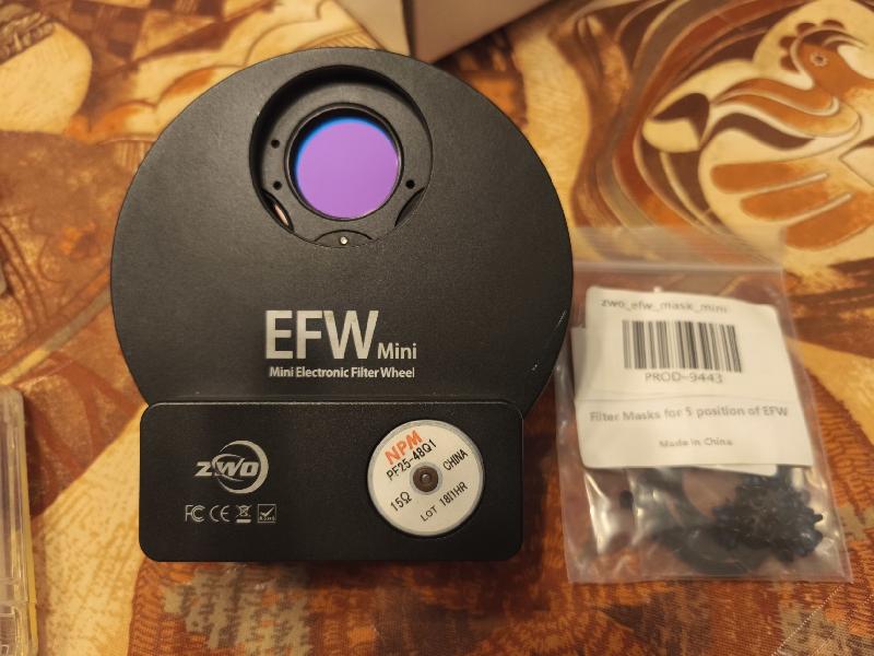 Pour cause de passage a roue 36mm, vends une RAF ZWO EFW Mini 5x1.25", avec l'adaptateur male/male et les masques+vis pour filtres non-montés (ainsi qu'un en impression 3d actuellement dans la roue).