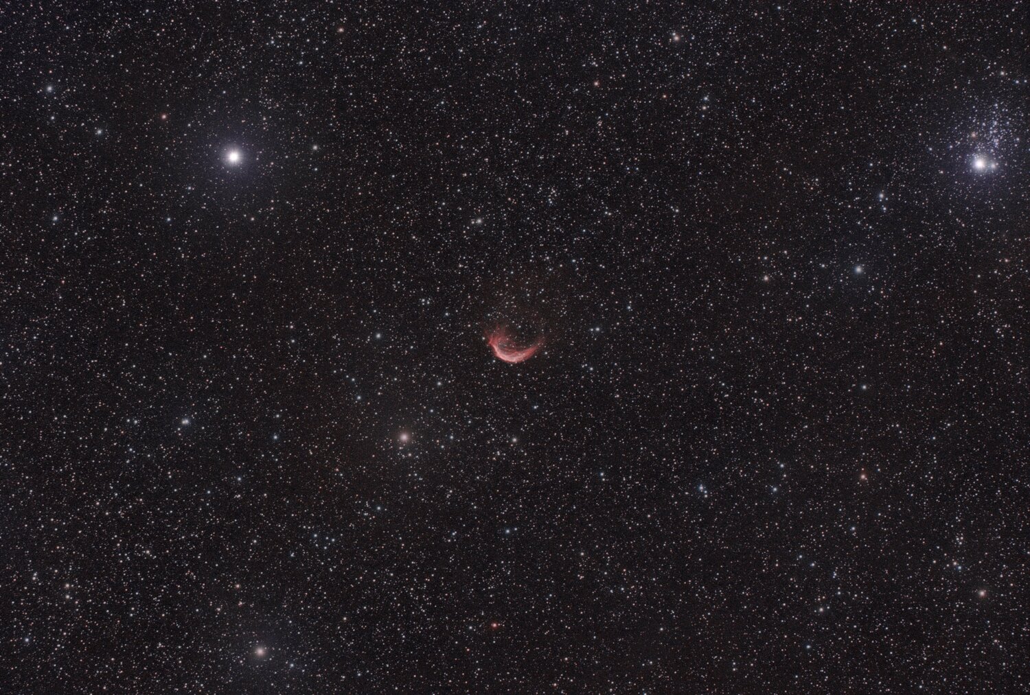 Bonjour à tous, Voici LBN633, une petite nébuleuse qui se trouve dans la constellation de Cassiopée prise dans la nuit de dimanche à lundi. Setup : TS80 + réducteur 0.79 + filtre IDAS NB1 + ASI294 MC Pro sur EQG Goto Guidage lunette Orion 80/400 + ASI 462 MC Acquisition NINA Traitement Siril + Gimp Avec réduction d'étoiles Traitement compliqué car il y avait de la brume et les étoiles étaient baveuses du coup j'ai dû en supprimer la moitié 😟 75x180s soit 3h45 A+ Manuel