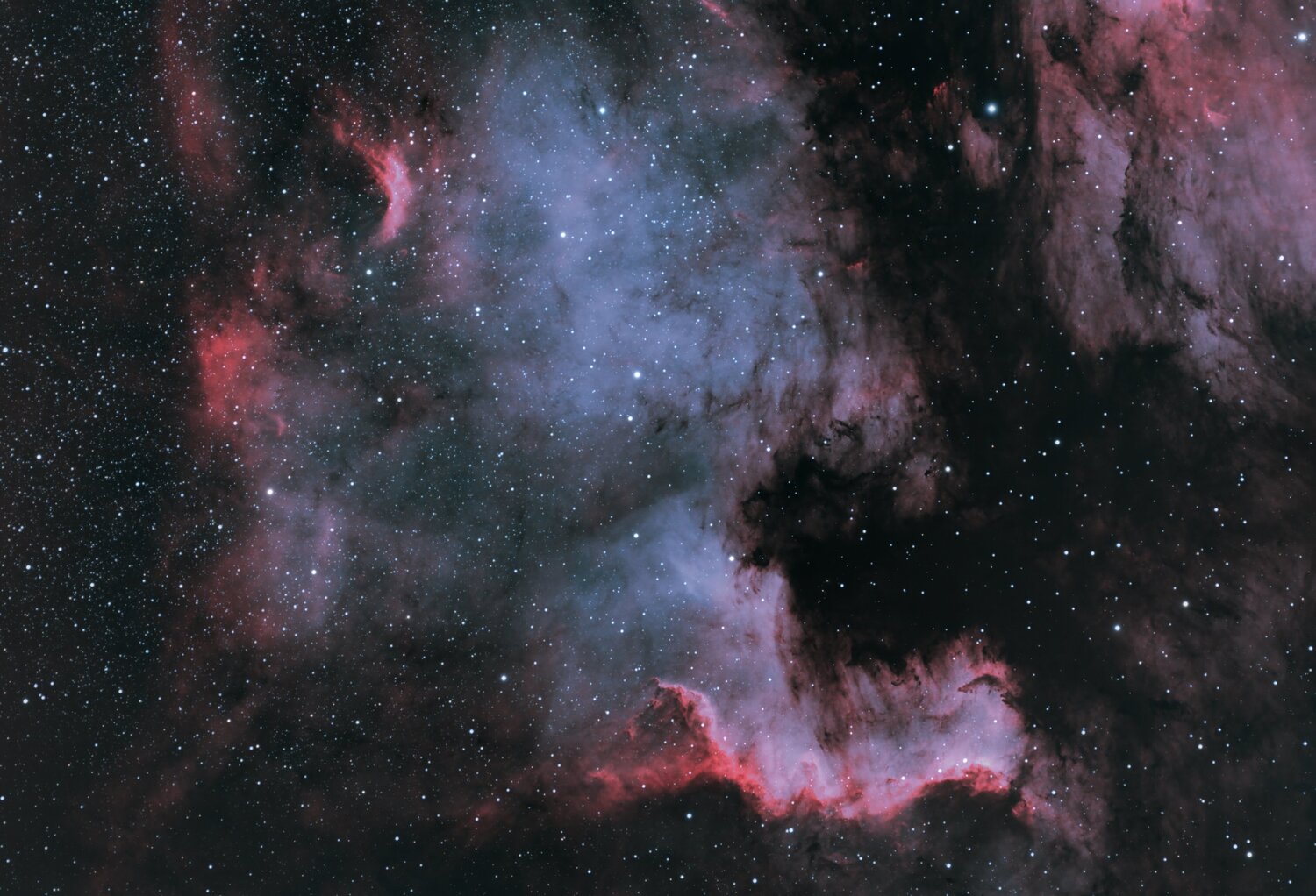 3. Bonjour à tous ci-dessous NGC 7000 sur laquelle j'ai essayé un premier traitement HOO. J'avoue ne pas être très satisfait du rendu. Les bleus sont pas bleus, le rouge est pâle. Donc en résumé je suis un peu perdu pour sortir un belle image en HOO, même si je sais que dans l'absolu j'ai un capteur couleur. EQ6-R Pro + Askar FRA 400 - ZWO 294 MC - Filtre Antlia ALP-T - 4h45 de poses (unitaires à 180'). Le tout mixé sous Pixinsight avec flats, darks et bias.