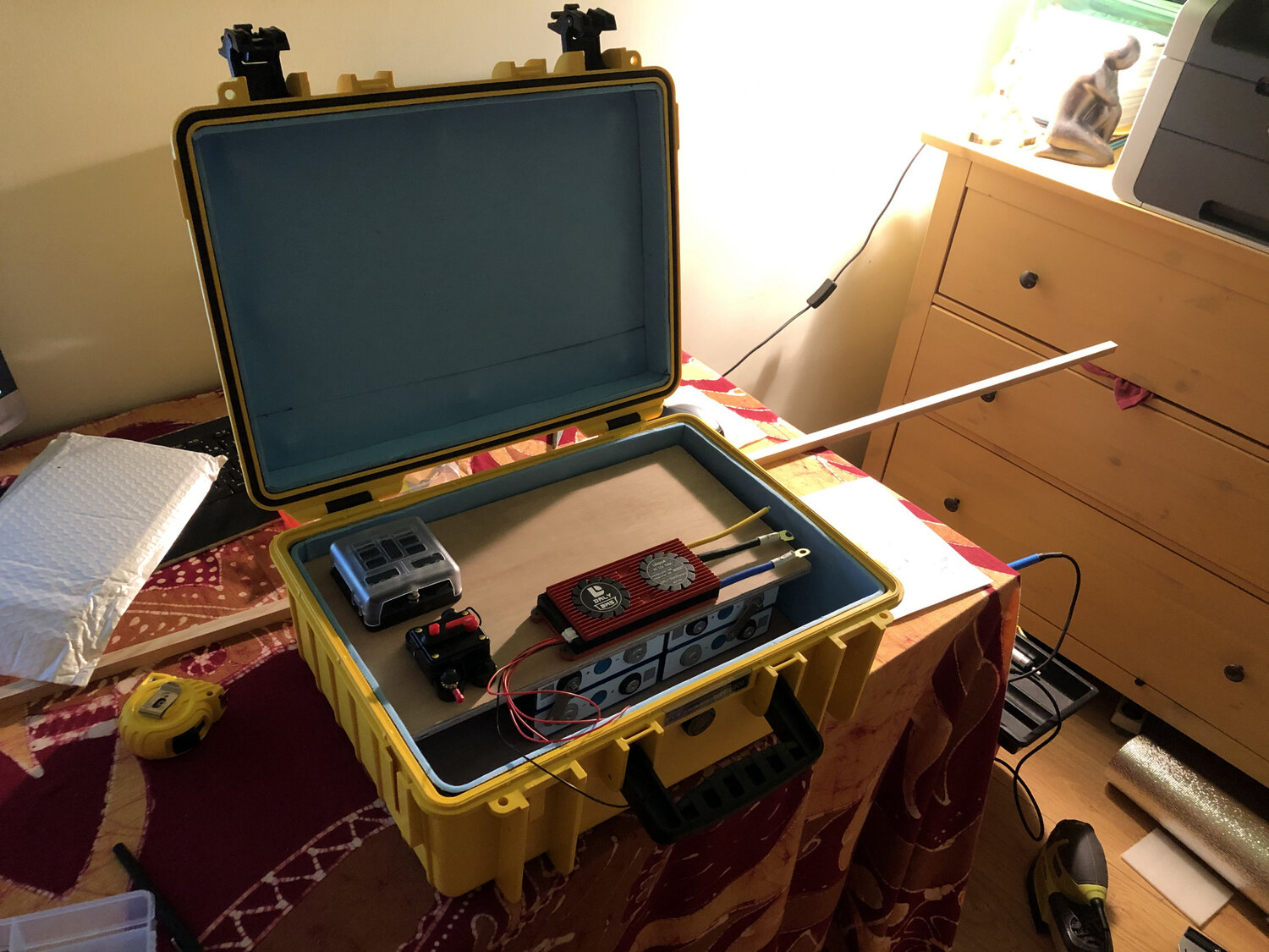 3. Cela faisait un petit moment que je recherchais une source d’alimentation nomade délivrant suffisamment de puissance pour mon setup. En me documentant ici et là, j’ai opté pour l’option batterie lithium LifePo4. Le contexte sanitaire ayant favorisé le temps que je pouvais y consacrer, je me suis donc lancé dans cette petite aventure. Au final, la puissance délivrée est d’environ 105Ah. Son environnement de fonctionnement est dédié à la haute montagne, donc en milieu un peu plus hostile que le plancher des cache en milieu tempéré http://www.astrosurf.com/uploads/emoticons/wink.png Caractéristiques de la valise : - 4 cellules de 3,2v / 105Ah chacune montées en série - données pour 4000 cycles. - 3 sorties allume-cigare 12v dont une dédiée à un convertisseur 12v/220v - 4 sorties USB 5v/2,4A - Un afficheur m’indiquant la puissance consommée en temps réels ainsi que l’autonomie restante. - Poids total 13kg Viendront se greffer prochainement un chargeur/convertisseur MPPT ainsi que deux panneaux solaires souples de 150W chacun. Les premiers tests d’autonomie sont prometteurs. Je reviendrai ici pour témoigner des véritables tests « in situ »! Adaptez votre montage en rapport avec la puissance désirée. Le cout global de ce montage en incluant tous les outils nécessaires pour l'assemblage s'élève à 700€ environ. Batterie / Matériel lié : - 4 pièces 3.2v 100Ah 105Ah Lifepo4 batterie Lithium grande capacité 3C décharge pour 12V 24V énergie solaire Etorage RV livraison rapide - BMS 100A port séparé - Voltmètre - Boitier / Valise - Coupe Circuit 100A - Porte Fusibles - Fusibles - Chargeur Connectique : - Prise allume cigare - Port USB façade - Interrupteurs Accastillage : - Cosses électriques - Foret conique - Cables 2,5 - Cables 0,5 - Visserie/siliconne/gaine thermo...