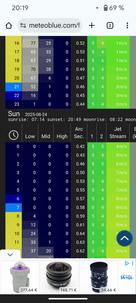 J'ai régulièrement un seeing un peu sous 1" (info meteoblue seeing). C'est ces périodes que je cible. Mais le plus souvent c'est 1,3 ou 1,5 quand le temps est bon évidemment. Je vais peut être faire des tests, mais je me doutais de vos réponses... Le pic du midi... 0,5 de seeing... ?