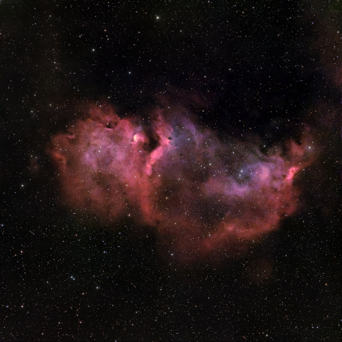 Bonjour 🙂 22 août 2025. Le Vespera pro pointe la nébuleuse IC1848, en une mosaïque automatique. Cette nébuleuse me fait penser à l'échographie d'un bébé dans le ventre de sa maman (tête à gauche et dos en bas) Paramètres d'acquisition: - mode multi-nuit: les 18 et 22 août 2025 - mode mosaïque automatique - 823 trames empilées en 04h18m00s de temps de pose cumulée - pas de filtre interférentiel utilisé de façon à pourvoir capturer les zones bleutées de la nébuleuse conséquence de la diffusion de la lumière des étoiles très chaudes (bleues) situées à l'intérieur de la nébuleuse. Les zones bleutées sont donc des zones en réflexion tandis que les zones rouges sont des zones hydrogène en émission. --- IC 1848 ou nébuleuse de l'Âme (Soul Nebula, en anglais) est une nébuleuse en émission, une région HII et un amas ouvert dans la constellation de Cassiopée, dans bras de Persée de la Voie lactée. Cet amas ouvert d'étoiles entouré par une nébuleuse, s'est formé il y a environ un million d'années à partir de la matière de la nébuleuse, pour devenir une région à sursauts de formation d'étoiles. L'astronome américain Edward Emerson Barnard découvre cette nébuleuse et en informe directement John Louis Emil Dreyer, qui l'inclue sous la référence IC 1848 dans la seconde édition de son "Index Catalogue (IC II)" publié en 1910. Caractéristiques: - dimensions apparentes: 60' x 30' - dimensions réelle: 150 années-lumière - distance: 6500 années-lumière-