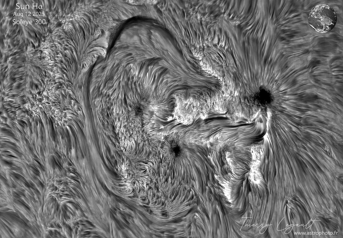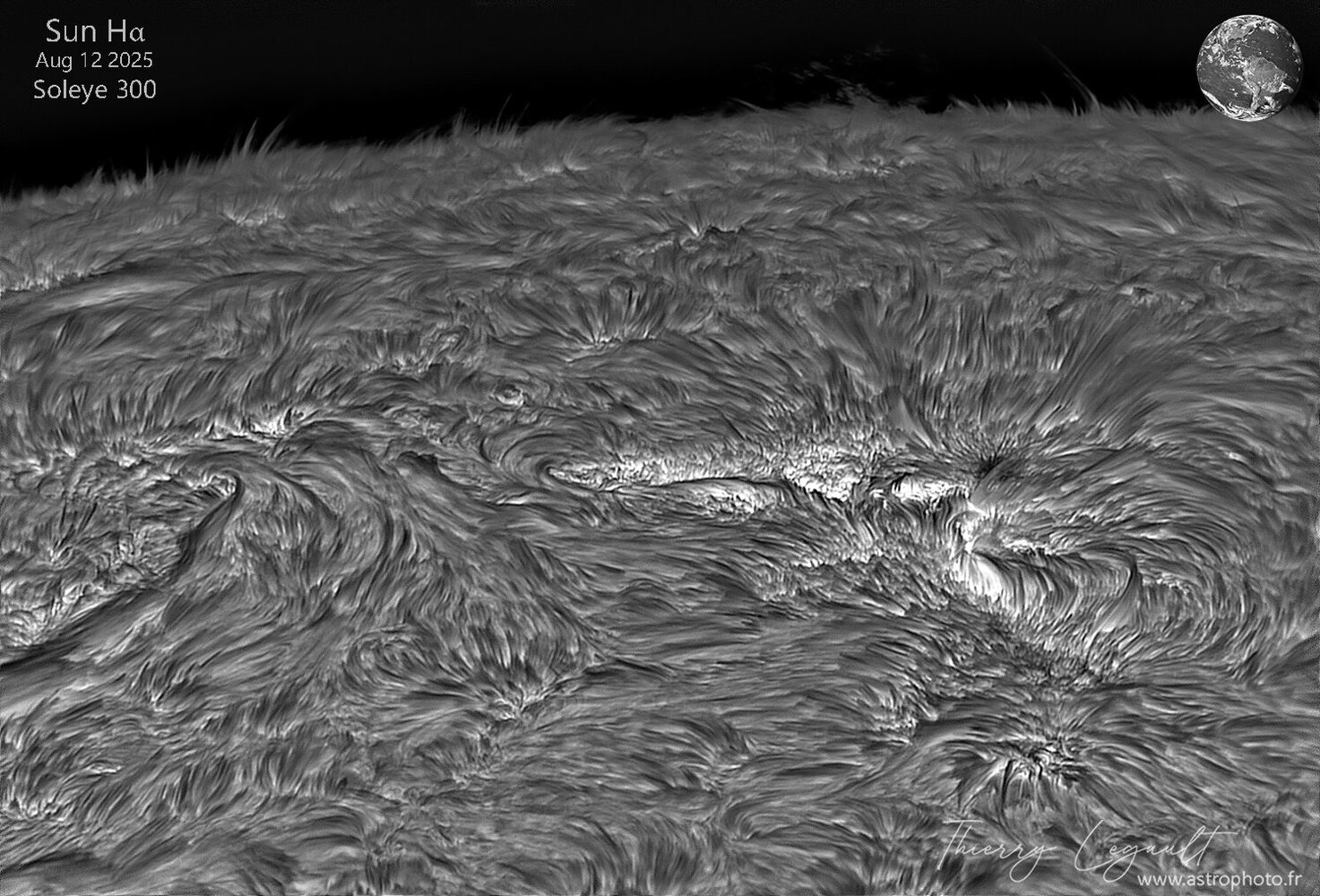 De bons trous de turbulence ce matin avant que les nuages et la pluie arrivent, toujours au Soleye 300 et Lunt 40 double stack devant IMX432 (focale 12000 mm !) 🙂- 5 réponses