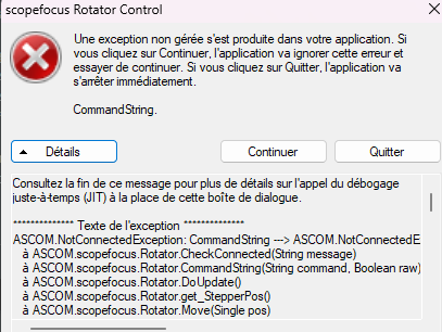 Bonsoir , l'application Windows me renvoie une erreur , je pense que j'ai un problème de configuration du step/size J'ai mis à jour Ascom et Net Framework. J'utilise le moteur 7HS08-1004S As tu une idée du problème ?