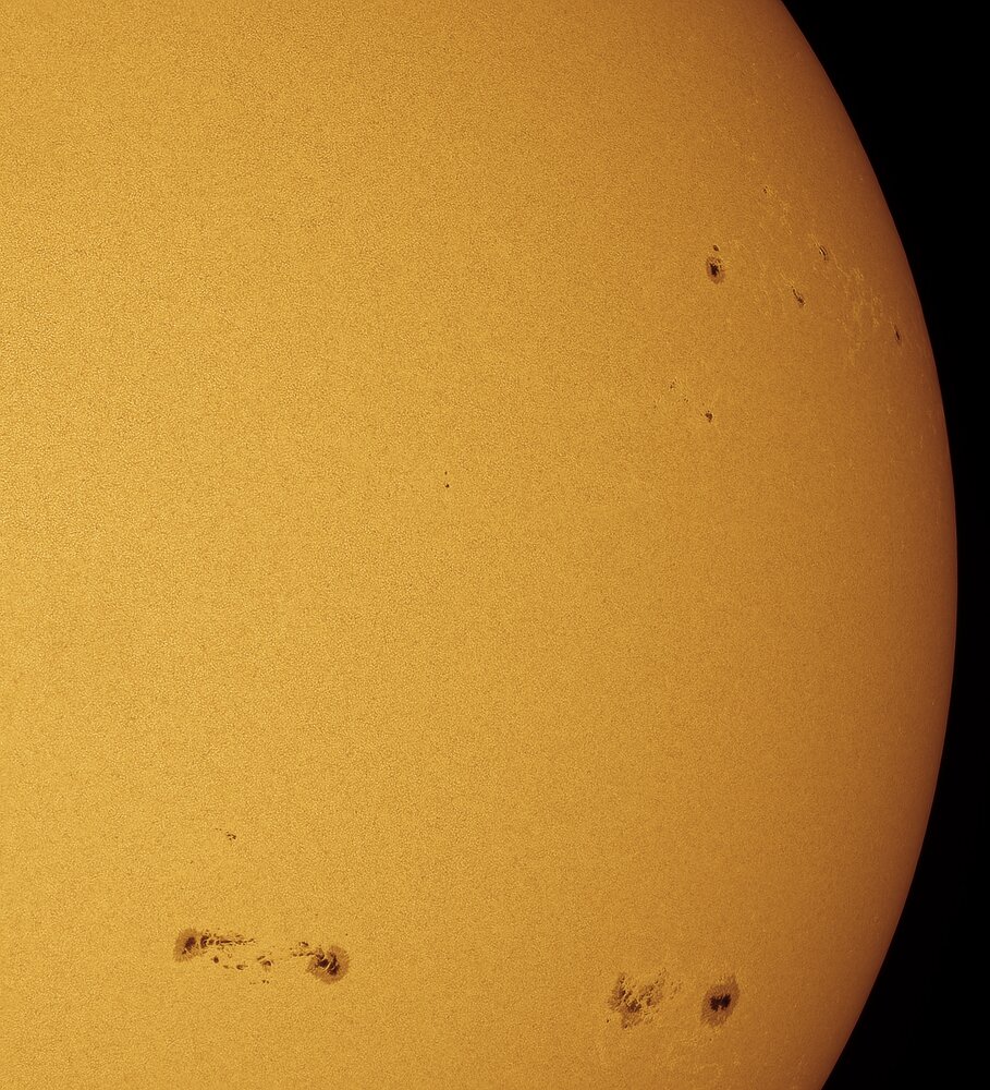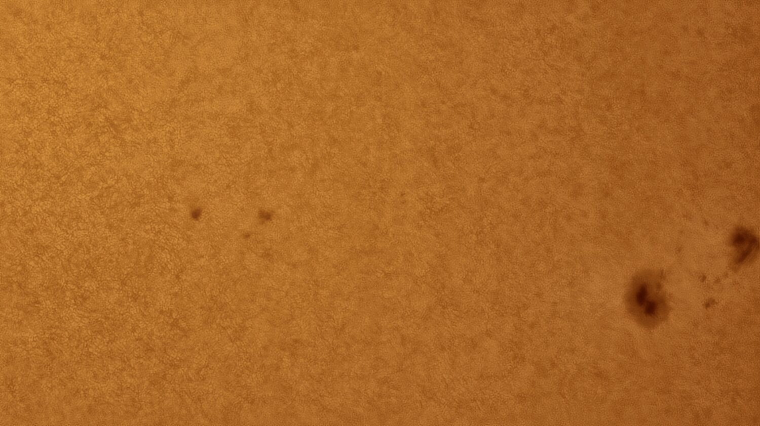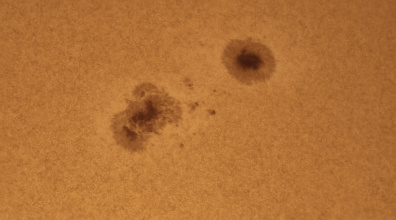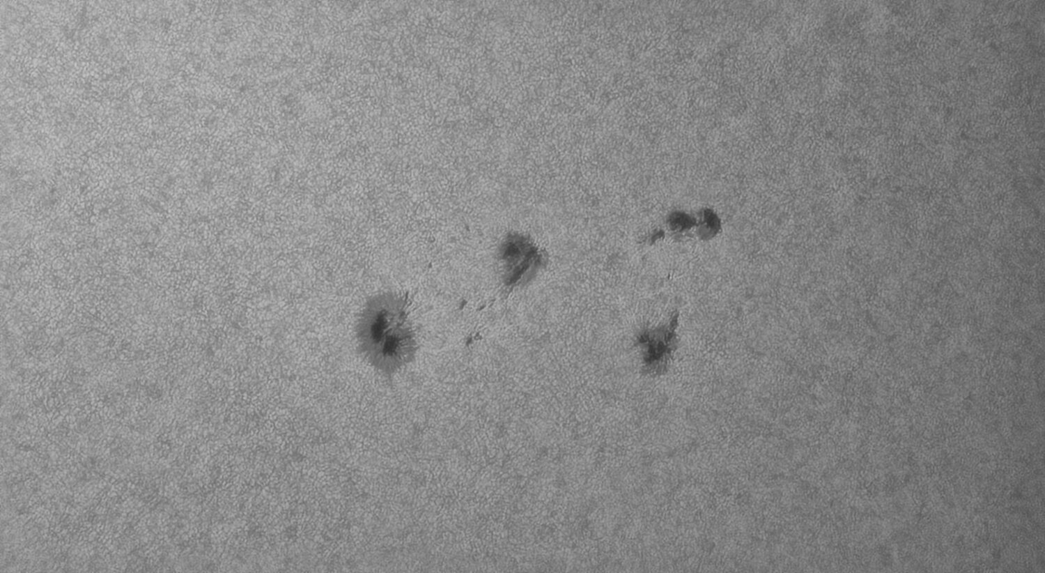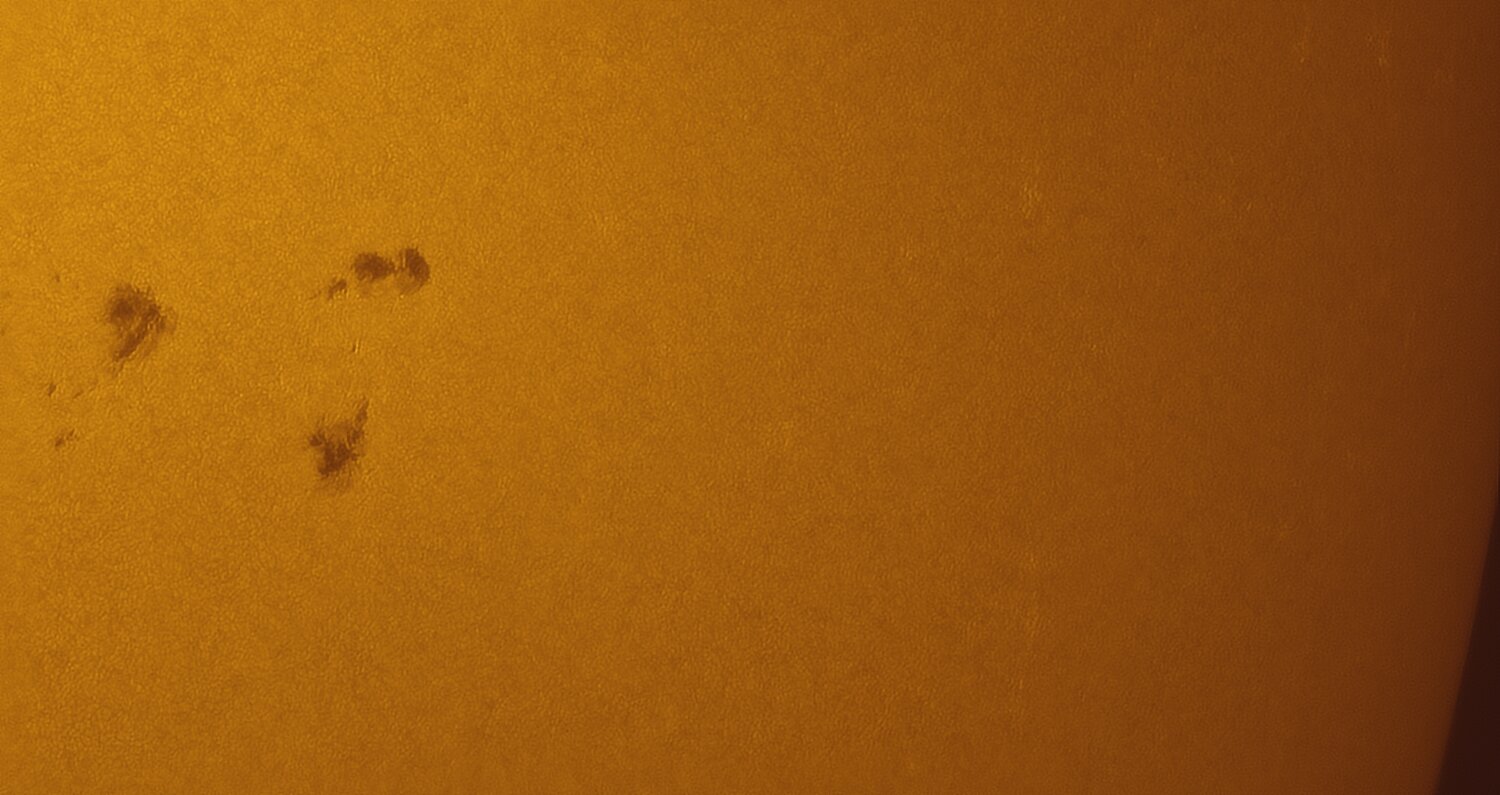 Bonsoir, Voici la suite des images du 29/05 dernier. Je suis bien content de pouvoir progresser en solaire. J'arrive maintenant à bien choper la granulation. Matériel: Lunette Bresser 152/1200 Prisme de Herschel Lacerta barlow Antares 2x Filtre ND3 Filtre Player One Photosphere (équivalent Baader Continuum mais semble t-il plus contrastant) Caméra Player One Mars-m II IMX462 -