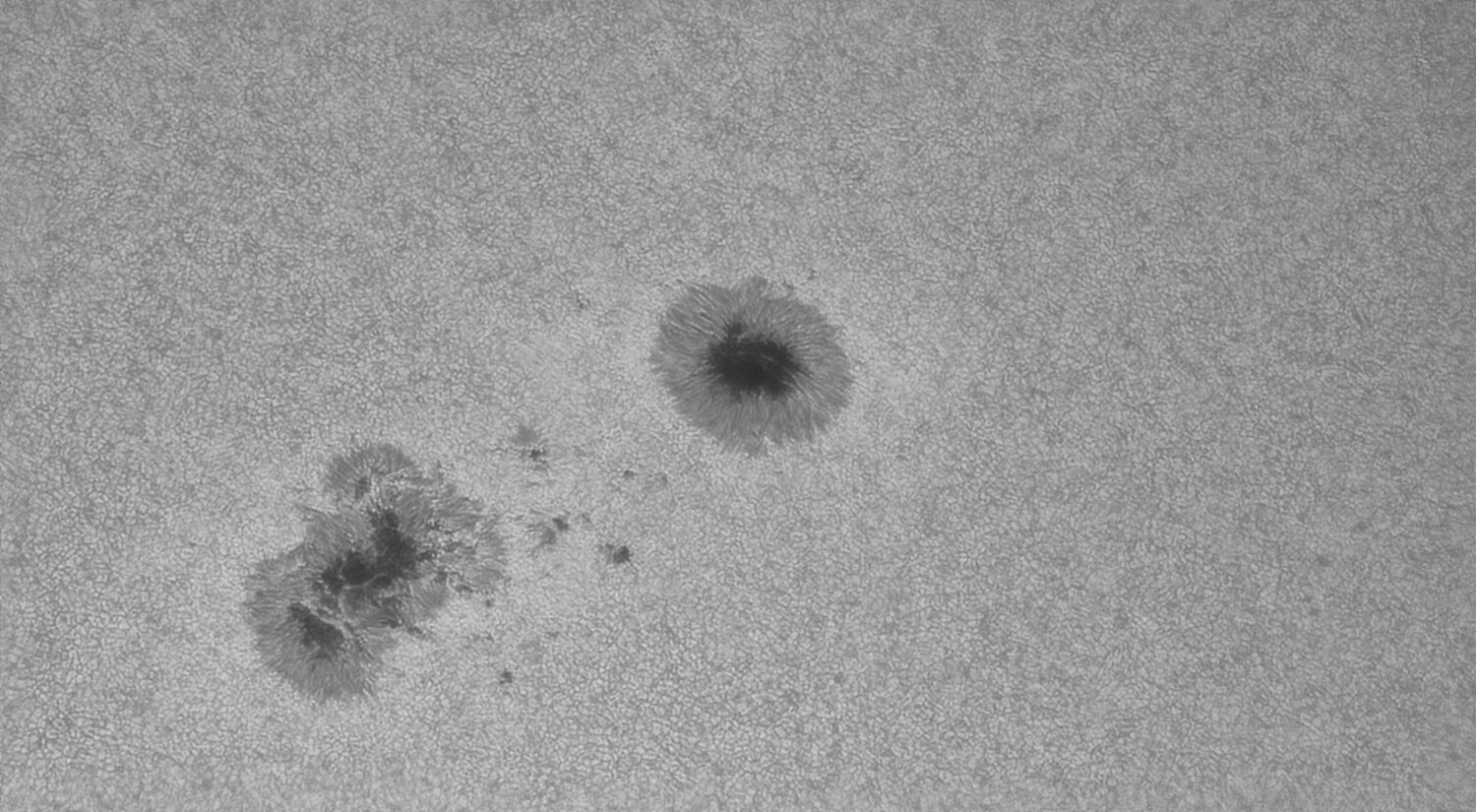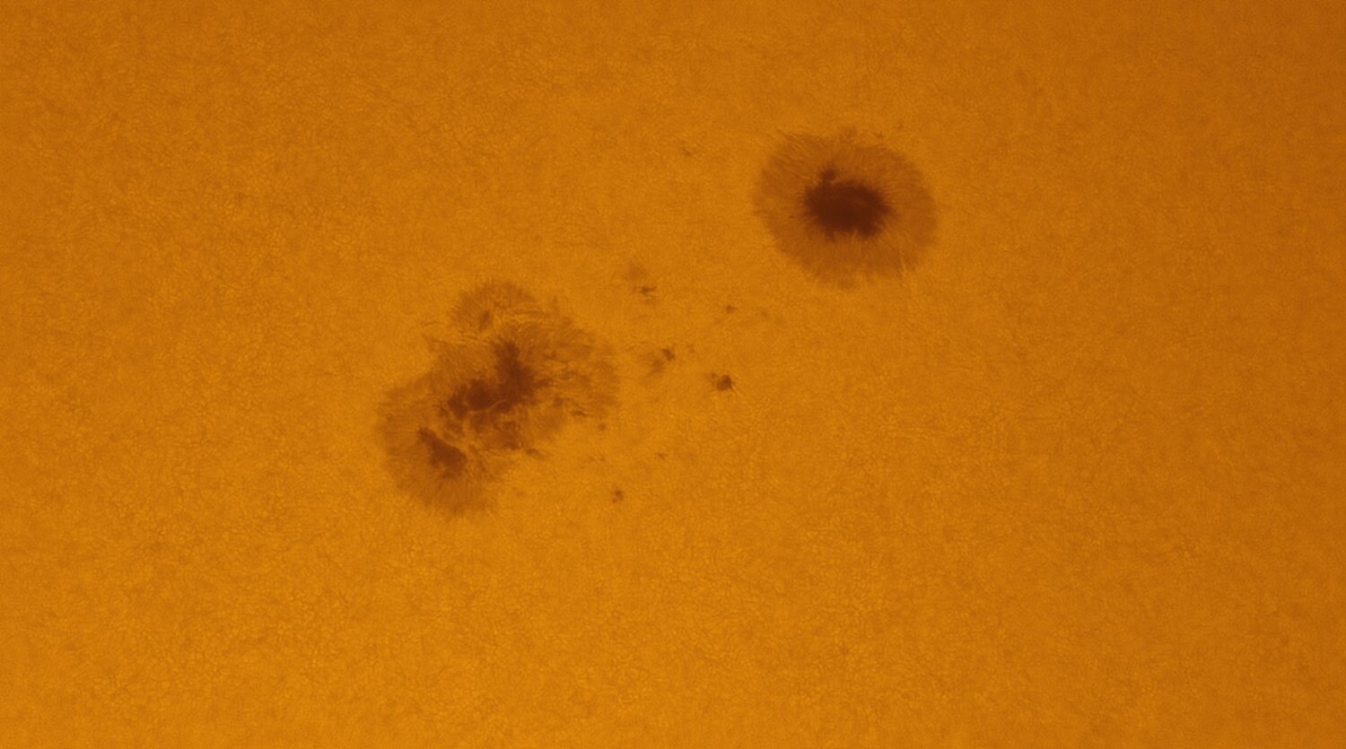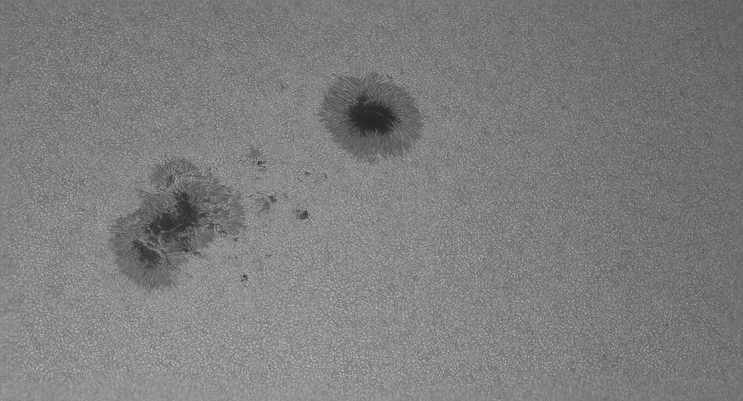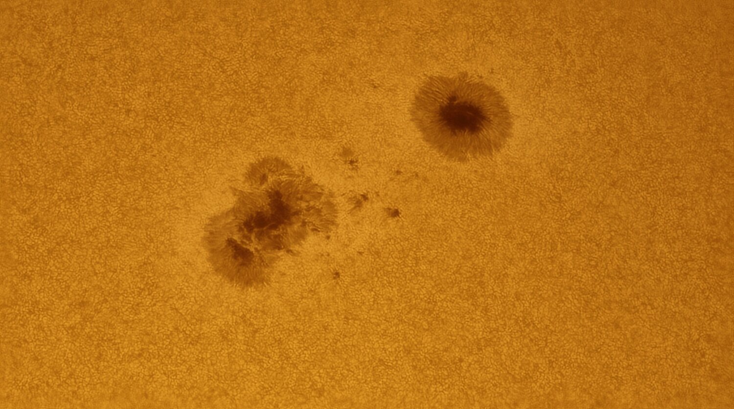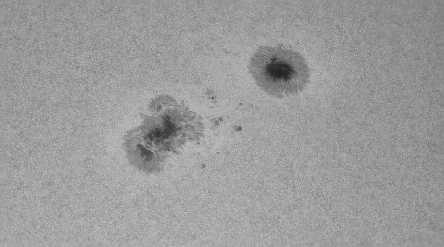 Bonsoir, Voici la suite des images du 29/05 dernier. Je suis bien content de pouvoir progresser en solaire. J'arrive maintenant à bien choper la granulation. Matériel: Lunette Bresser 152/1200 Prisme de Herschel Lacerta barlow Antares 2x Filtre ND3 Filtre Player One Photosphere (équivalent Baader Continuum mais semble t-il plus contrastant) Caméra Player One Mars-m II IMX462 -