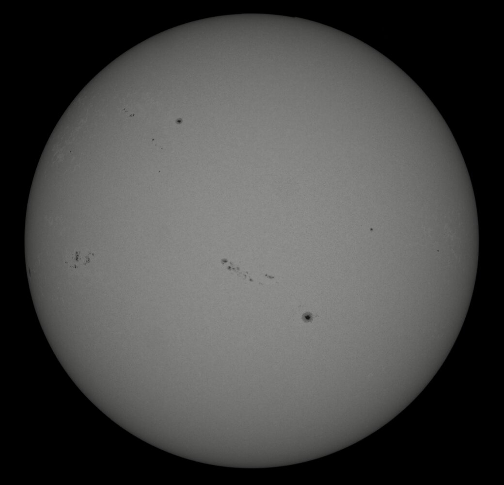 Bonsoir, Voici quelques images du 31/5/2023. Matériel: Lunette Bresser 152/1200 Prisme de Herschel Lacerta Filtre ND3 Filtre Player One Photosphere (équivalent Baader Continuum 540nm +- 10nm) Caméra Player One Mars-m II IMX462 Au foyer et Barlow 2x -