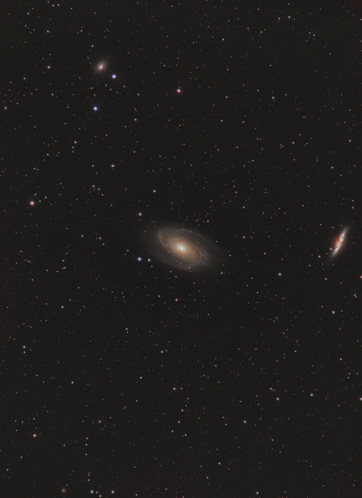 Bonjour, Suite et fin de la série mono + filtres. J'ai tourné le matos vers le duo archi connu de la Grande Ourse, M81/M82, et leurs voisines. Les infos: lunette Skywatcher 80ED (80/600mm) + correcteur 0.8x QHY163m + filtres LRGB / Ha monture HEQ5 Rowan autoguidage lunette 50x200, Asi290mm / PHD2 acquisition NINA L 61 x 120s R 18 x 120s G 16 x 120s B 15 x 120s Ha 32 x 120s Gain 139 -10°C Traitement Sirilic, Siril, Pixinsight. Les brutes empilées: final_M81 nuit 2_R-gradient.fitfinal_M81 nuit 2_Ha-gradient.fitfinal_M81 nuit 2_G-gradient.fitfinal_M81 nuit 2_B-gradient.fitM81 Nuit 2_L-gradient.fit -