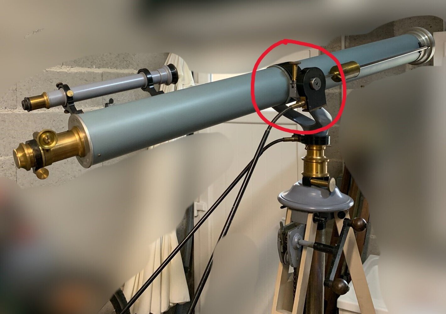 Mais pour l'utiliser, il me faudra trouver ou refabriquer le collier de fixation, ainsi que le mécanisme de mouvements lents en altitude comme sur la photo ci-dessous tirée du sujet