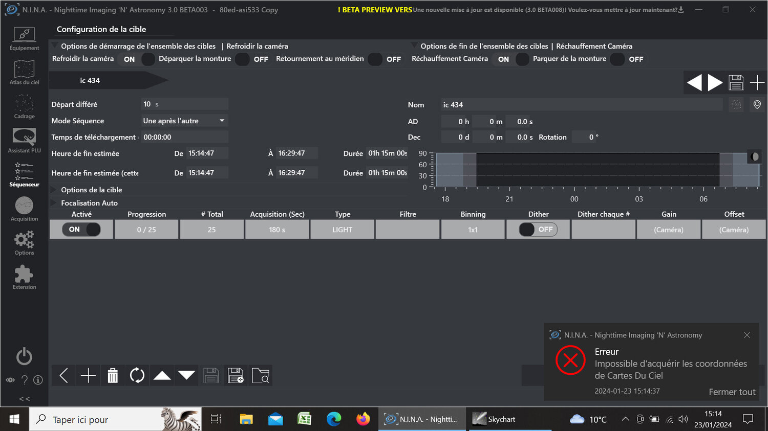 Bonjour Débutant avec Nina , j'ai le message d'erreur: Impossible d'acquérir les données de Carte du Ciel. ça se passe quand je suis dans le séquenseur et que je clique a droite pour obtenir "les coordonnées du logiciel de planetarium " !!! D'ailleurs dans options , nulle part on me demande ou se site Carte du ciel J'ai loupé quelque chose mais ou? Classeur1.xlsx