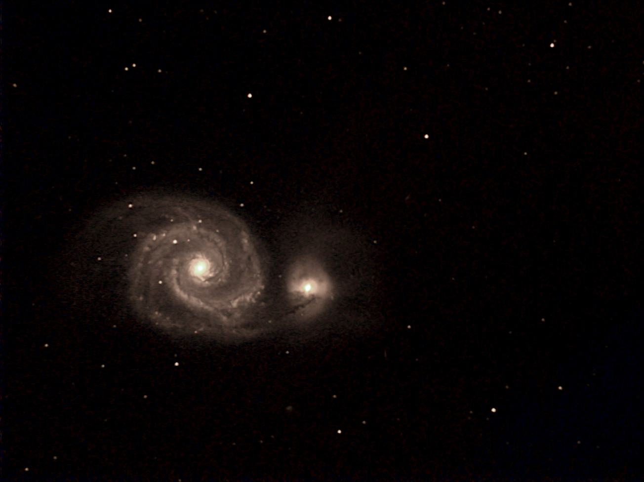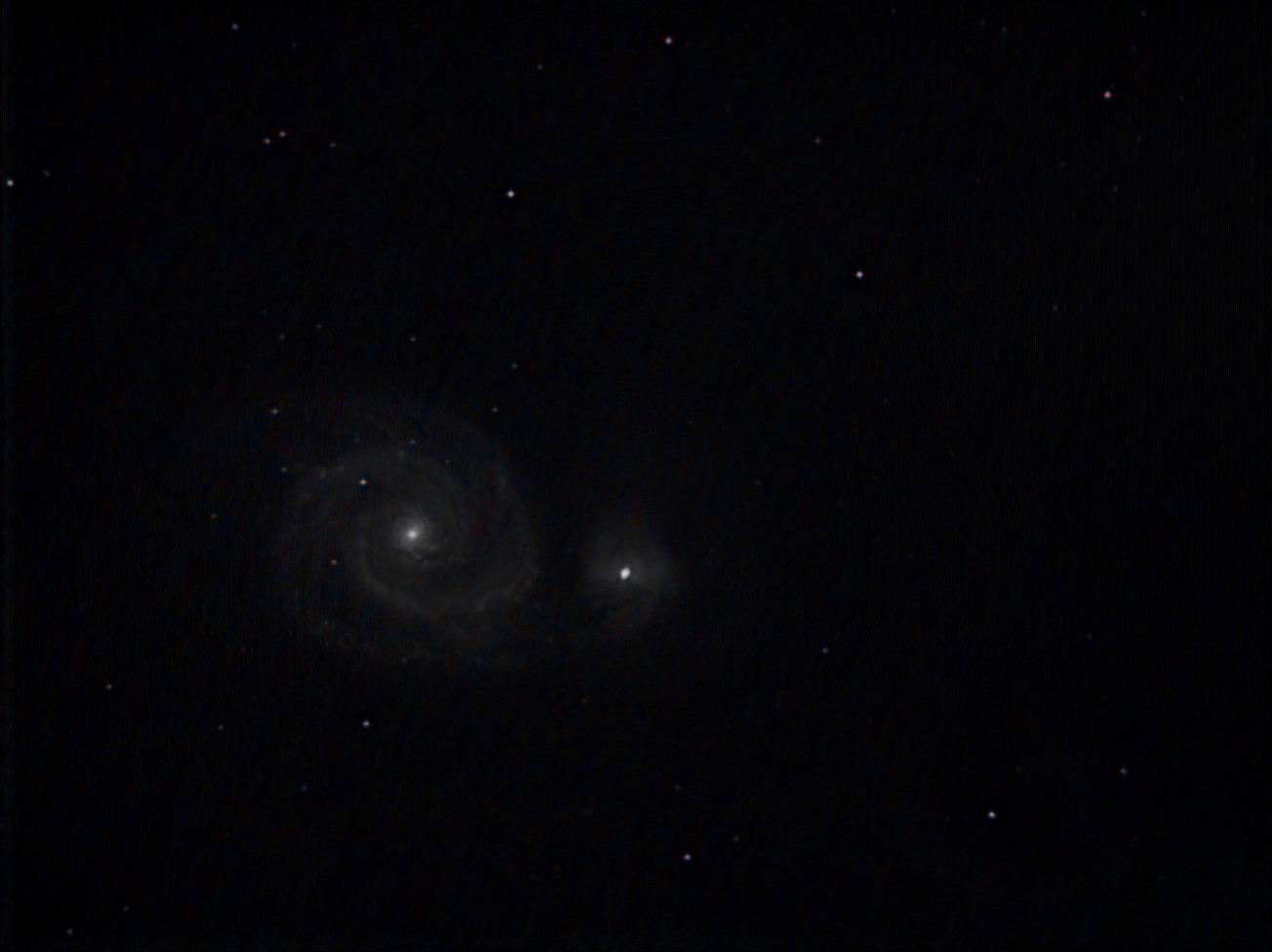 23. Re bonjour, j'ai refait un traitement un peu meilleur. Par contre, on voit sur ce traitement en haut à droite une tache, je retrouve au même endroit cette tache lorsque j'ai fait des tests sur le soleil... SAchant que j'ai nettoyer mes miroirs, et que lorsque je bouge la caméra la taches reste en même endroit, possible que ce soit un problème de capteur de la camera? sur M51, je pense que le coin en rouge, c'est à cause de la led d'alimentation de la monture HEQ5 qui était près du miroir primaire et comme le fond du téléscope est ouvert... une astuce pour cela? Merci pour votre aide !