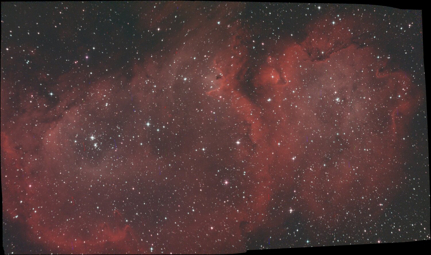 Bonjour à tous. Voila j'ai voulu tester la mosaique sur la nébuleuse de l'ame. J'ai intaller APP hier soir, donc merci de me conseiller sur ma méthode Les prises de vus sont de 600s dans les deux panels et environ 50 images. J'ai d'abord fair tout avec APP, mais l'image de sortie est bizarre... déformée et le crop est très important à faire. De plus il y a des lignes bleues et rouge bizarre dans l'image. voici ce qui en ressort J'ai donc testé autrechose, j'ai sous Siril fait le traitement des deux sessions séparément avec extraction Ha et Oiii. J'ai fait la composition HOO sur siril et j'ai ensuite repris ces deux fichiers que j'ai mis dans APP pour faire la mosaique. J'ai ensuite repris le tout sur GIMP. J'ai un soucis pour moi ou je trouve les étoiles un peu bleues. A part cela, je suis relativement satisfait pour une première mais avez-vous des avis? ou des conseils? merci -
