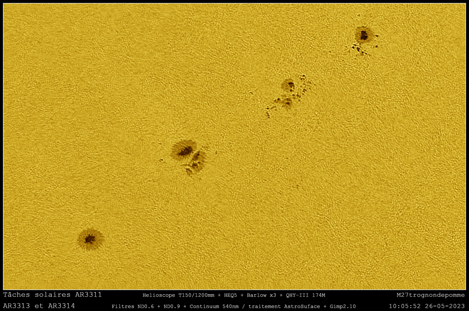 Voici la suite de mes images du jour : Groupe de tâches AR3310: Groupe de tâches AR3311, AR3313 et AR3314 Groupe de tâches AR3315 et la grosse protubérance. -