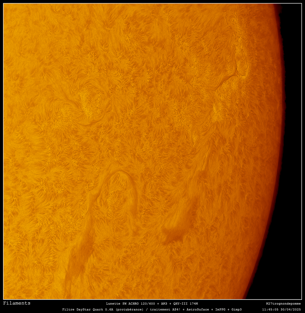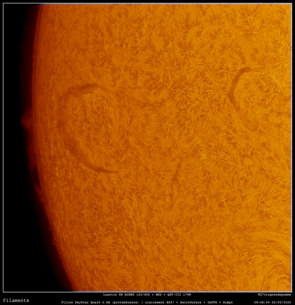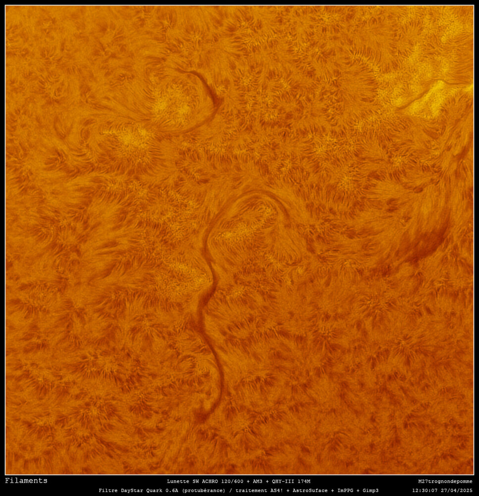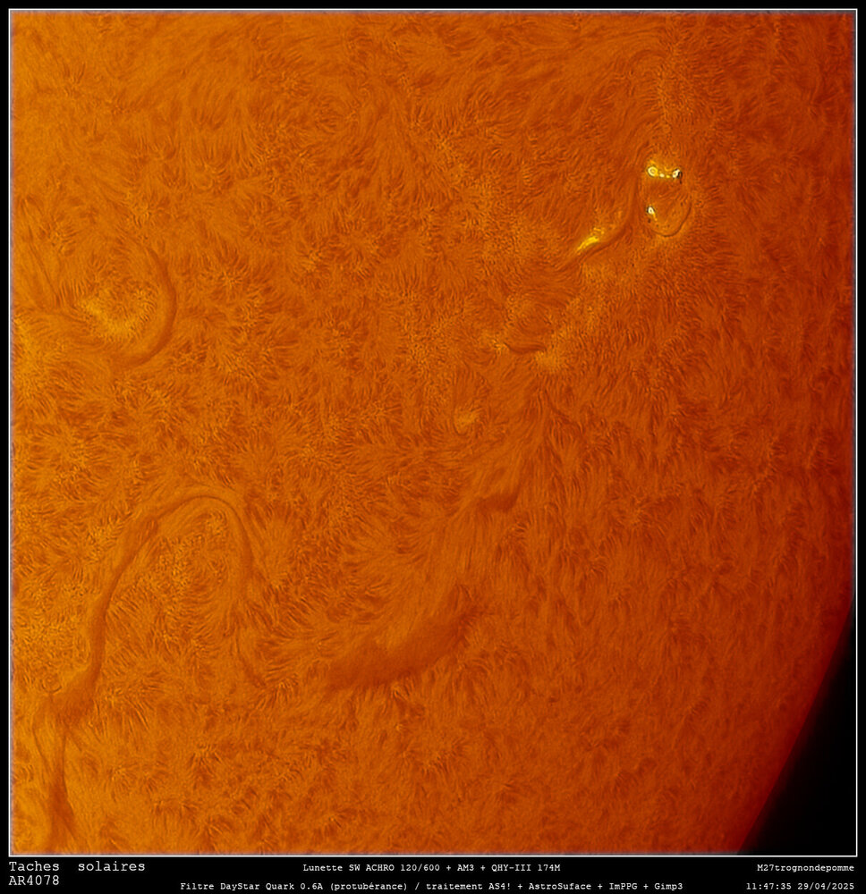 Avec un peu de retard sur le traitement, je présente quelques zooms sur l'activité solaire en Ha de hier avant midi : -