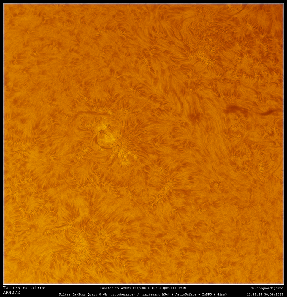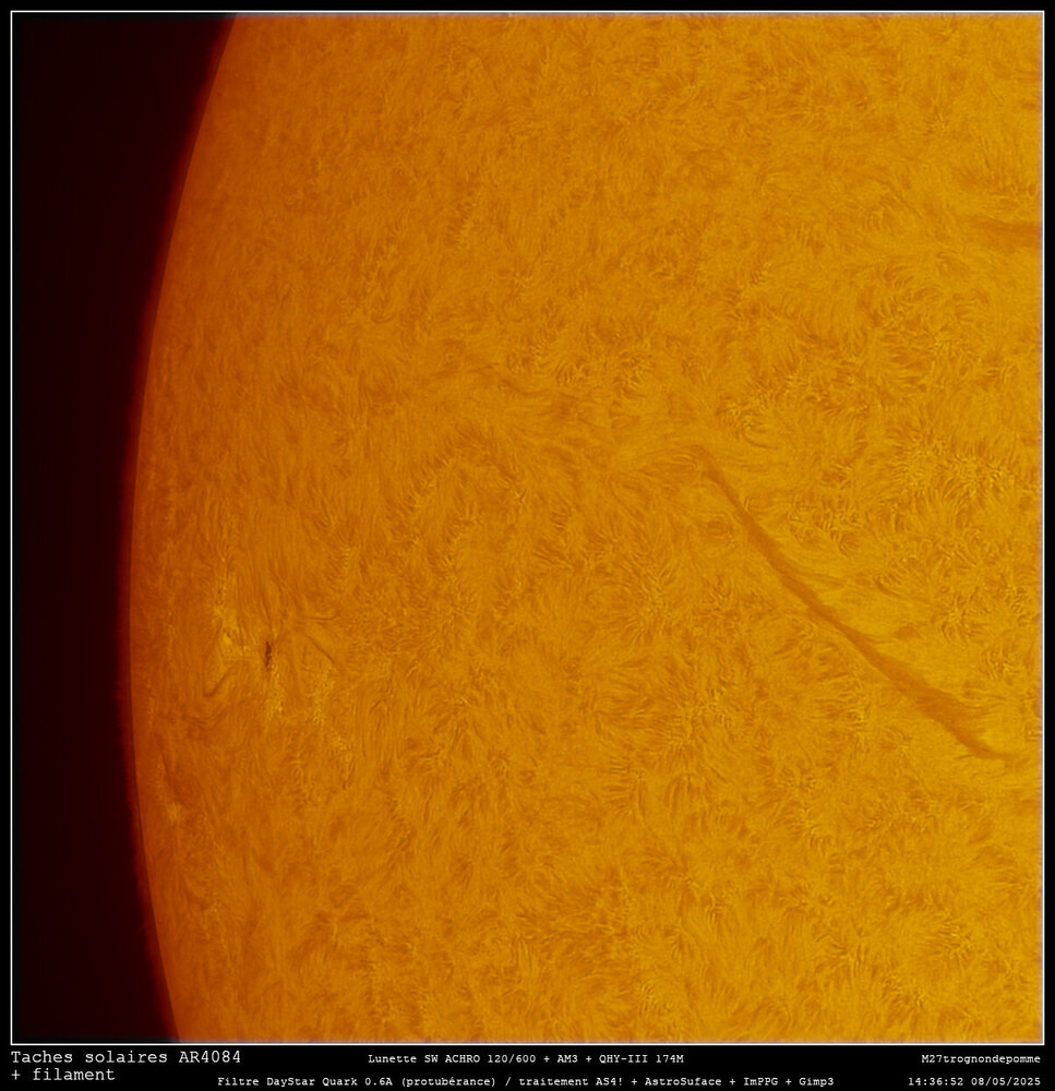 En 10 min dans une trouée nuageuse , j'ai eu juste le temps pour imager les taches du jour ( AR4079 , AR4081, AR4082 et AR4084 ) : pas d'animation pour aujourd'hui. -
